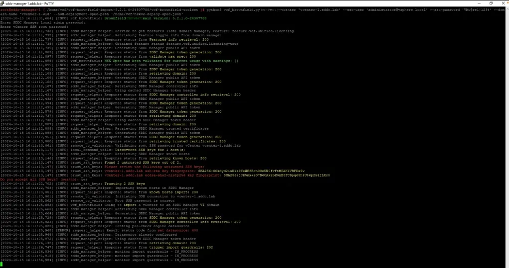 With VCF 5.2, SDDC Manager can now be deployed as a standalone appliance for conversions. Steps include: